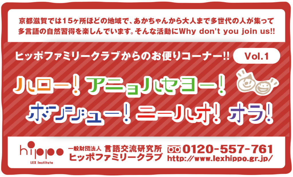 ヒッポファミリークラブでは、赤ちゃんのようにいくつものことば(多言語)を自然に身につけることを楽しんでいます。 その赤ちゃんを観察しようと1歳になったばかりの娘...