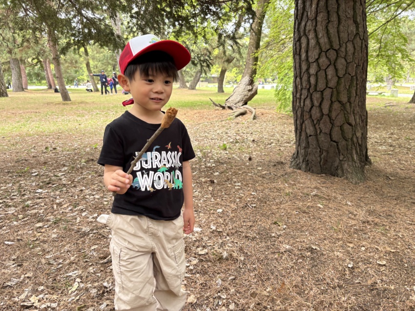 お子さんは、森のなかへ、自然の宝探しへ♪