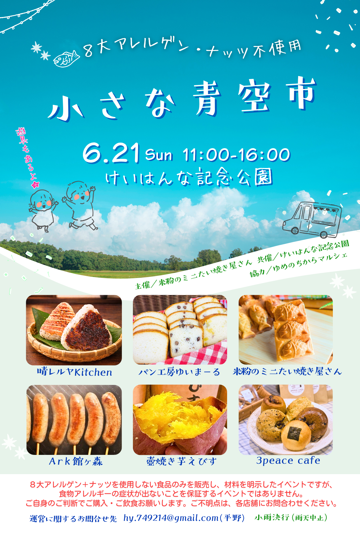 | イベント名 | 8大アレルゲン・ナッツ不使用の小さな青空市 |