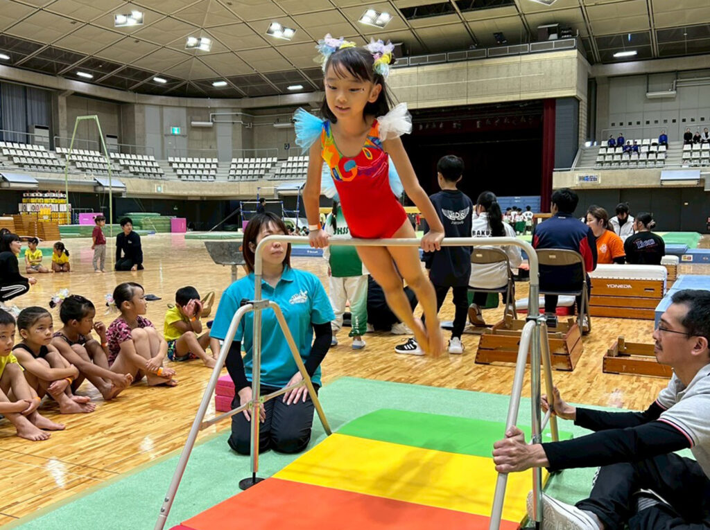 今年度からはイベント内容が大幅にリニューアルされ、より多くの子供たちが「からだを動かす楽しさ」を体験できるようプログラムの幅が広がりました。さらに今回は子育て環境日本一を目指す京都府の地域交響プロジェクト採択事業として実施され、行政とも連携しながら地域全体で子供の成長を応援する取り組みとなりました。体操競技の枠にとどまらず、地域の健康づくり、教育活動として位置づけがより強まっています。